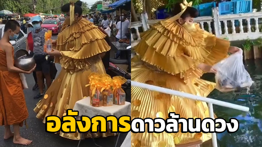 กลายเป็นที่ฮือฮาในโลกออนไลน์ตอนนี้ หลังผู้ใช้เฟซบุ๊ก Wasawat Ouwichit ได้โพสต์คลิปวิดีโอที่เจ้าตัวแต่งกายด้วยชุดสุดอลังการ ออกมาทำบุญตักบาตรเนื่องในวันเกิดของเธอ จนกลายเป็นจุดเด่นในโลกออนไลน์