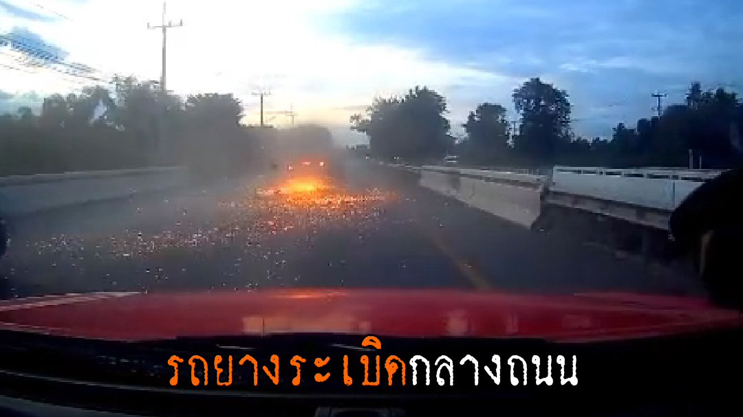 คลิปอุบัติเหตุ จากผู้ใช้ TikTok ชื่อ nim_my.1868 เป็นภาพกล้องหน้ารถ ขณะที่ขับตามรถคอกบรรทุกผลไม้ อยู่ ๆ รถคอกด้านหน้าล้อหลังได้เกิดระเบิดขึ้น ทำให้เสียหลักหมุนคว้างก่อนพลิกคว่ำ เทกระจาดผลไม้ระเนระนาดเต็มถนน