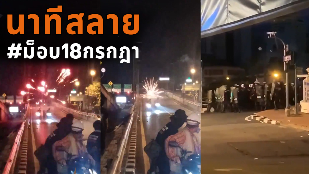 ย้อนชมนาทีสลายการชุมนุมหลังเจ้าหน้าที่ตำรวจชุดควบคุมฝูงชน ตรึงกำลังพร้อมเดินหน้าเข้าหากลุ่มผู้ชุมนุม เพื่อผลักดันมวลชนออกจากพื้นทื่ ก่อนเกิดการปะทะกัน ทั้งยิงกระสุนยาง และพลุไฟ