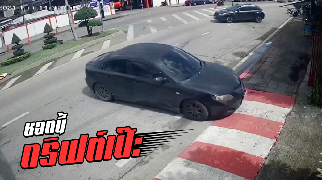 ผู้ใช้แอปฯ TikTok ชื่อ larnyaiperm โพสต์คลิปกล้องวงจรปิด อุบัติเหตุ รถเก๋งจะยูเทิร์นไม่ระวัง ชนท้ายรถอีกคันจนหมุนดริฟต์เข้าซอง จอดขวางหน้าประตูได้อย่างเป๊ะ โชคดีคนขับไม่เป็นอะไรมาก