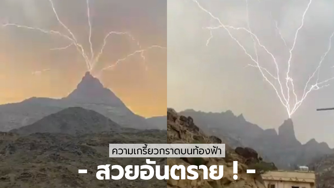 คลิปฟ้าผ่า สายฟ้าฟาดสวย ๆ ที่หาชมได้ยาก ความเกรี้ยวกราดบนท้องฟ้าที่มาพร้อมความอันตราย ปรากฎการณ์ฟ้าผ่านี้เกิดขึ้นในเขต Mount Shada ในจังหวัด Makhwa ประเทศซาอุดิอาระเบีย 13 กันยายน 2564