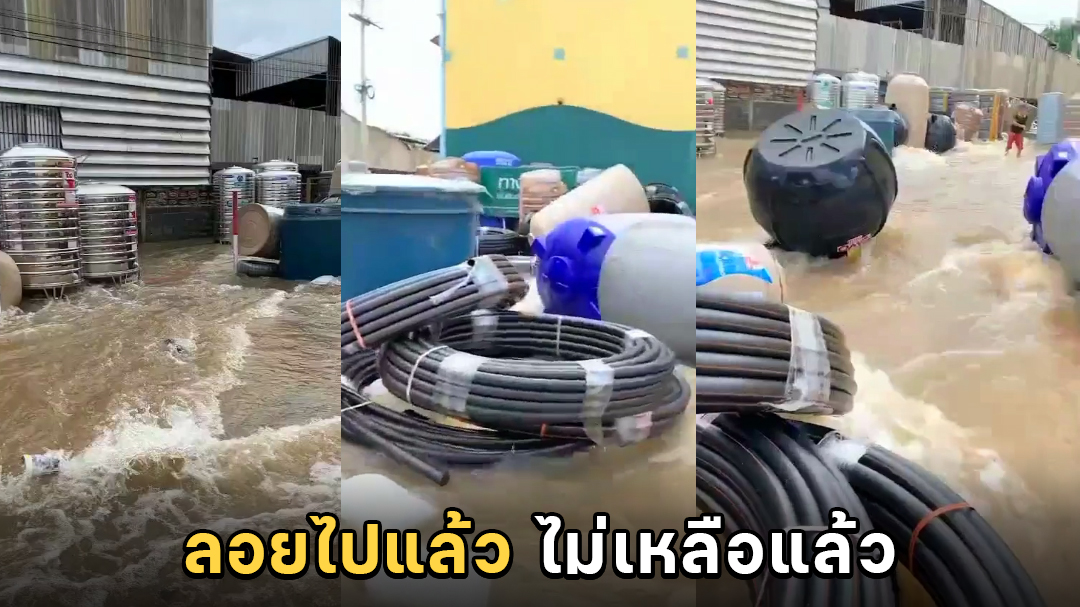 สถานการณ์น้ำท่วมชัยภูมิยังหนัก ที่โกดังโกลบอลเฮ้าส์ เจอกระแสน้ำซัดแรงจนข้าวของกระจัดกระจาย ลอยไปกับกระแสน้ำ