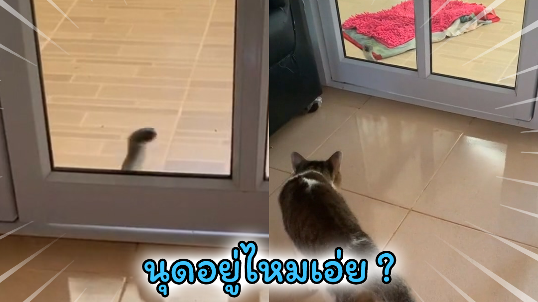 ในทีแรกเจ้าของบ้าน บอกว่าเปิดประตูกระจกไว้ งูเลื้อยจากข้างนอกเข้ามาไม่รู้ตัว แต่ดีที่เจ้าเหมียวเห็นก่อนส่งเสียงขู่ เจ้าของบ้านเลยออกมาดูและปิดประตูกระจกได้ทัน