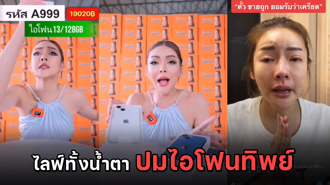 กระทั่งวันที่ 23 มีนาคม 2565 ตั้ว ออกมาไลฟ์ร้องไห้และขอโทษลูกค้า โดยแจ้งว่าได้โอนเงินคืนลูกค้าเกือบครบทุกคนแล้ว เหลืออีก 12 ท่าน ที่ยังไม่ส่งเลขบัญชีให้ทางร้าน สำหรับเลขพัสดุของลูกค้าที่ขึ้นในระบบขนส่งแล้ว ยังสามารถเช็กได้เหมือนเดิม แต่ไม่ใช่มือถือ iPhone เป็นของเล็ก ๆ น้อย ๆ แทนคำขอโทษ ซึ่งเมื่อของถึงลูกค้าพบว่าเป็น เตารีด 1 เครื่อง กับไฟเบอร์ 2 กล่อง ไม่สอบถามความสมัครใจของผู้รับเลยว่าต้องการเป็นมูลค่าเงินหรืออยากได้สินค้าที่จัดหามาให้ โดยที่ไม่แจ้งล่วงหน้าว่าเป็นอะไร