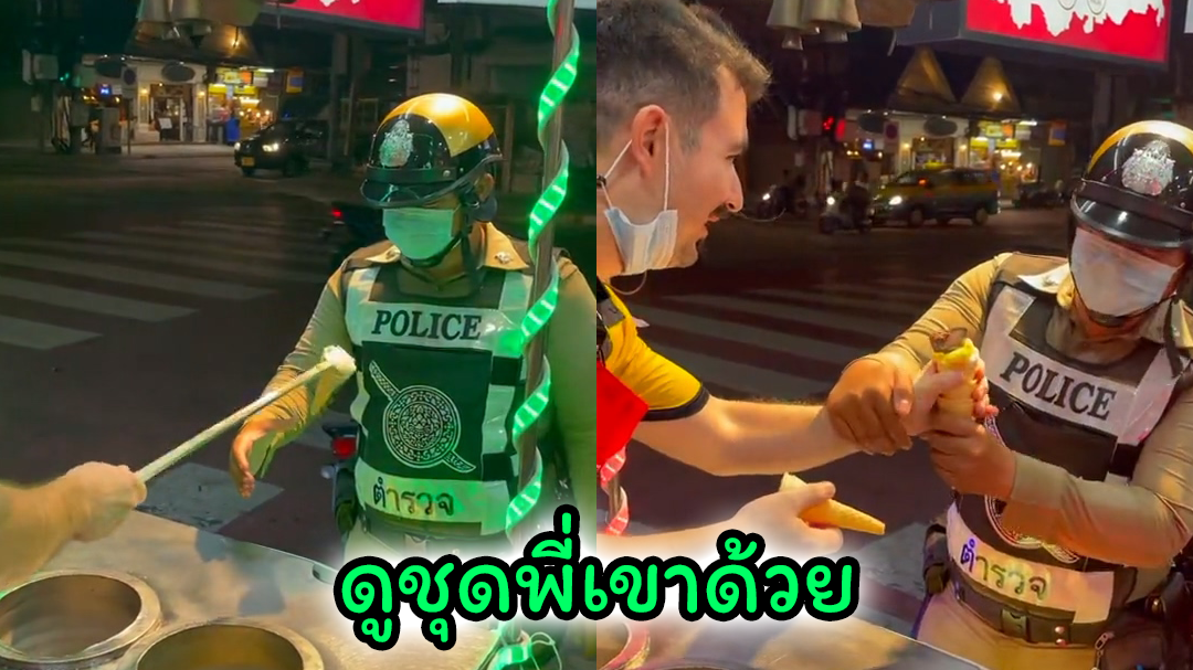 และคลิปนี้ก็เช่นกัน ผู้ใช้ TikTok ชื่อ @iceboypattaya โพสตคลิปลีลาเฟี้ยว ๆ ของพ่อค้าไอศกรีมกับการขายให้นายตำรวจท่านหนึ่ง ซึ่งทางพ่อค้าก็จัดเต็มโชว์เทคนิคหยอกเล่นเช่นเคย คุณตำรวจก็หยิบแล้วหยิบอีกไม่ได้สักที งานนี้ทำชาวเน็ตเอ็นดู อดที่จะแซวไม่ได้... "ป่ะ เดี๋ยวไปเล่นที่ต่อที่โรงพักเนาะ, จะเล่นก็ดูชุดพี่เขาหน่อย"