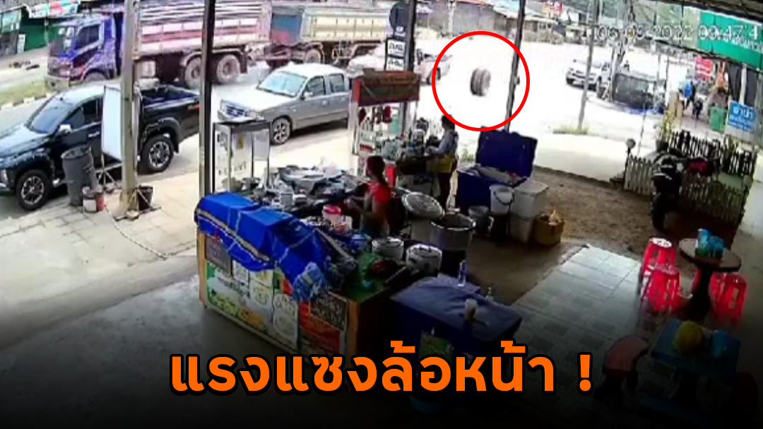 ผู้ใช้ TikTok ชื่อ @whanjasucoy โพสต์คลิปกล้องวงจรปิดของวันที่ 6 พฤษภาคม ที่ผ่านมา พร้อมเขียนแคปชั่น "ป้ายฉันหายไปกับตา" อุบัติเหตุรถบรรทุกที่ขับผ่านมา ทำล้อหลุดก่อนกลิ้งมาชนป้ายและเคาน์เตอร์ร้านอาหารอย่างแรง