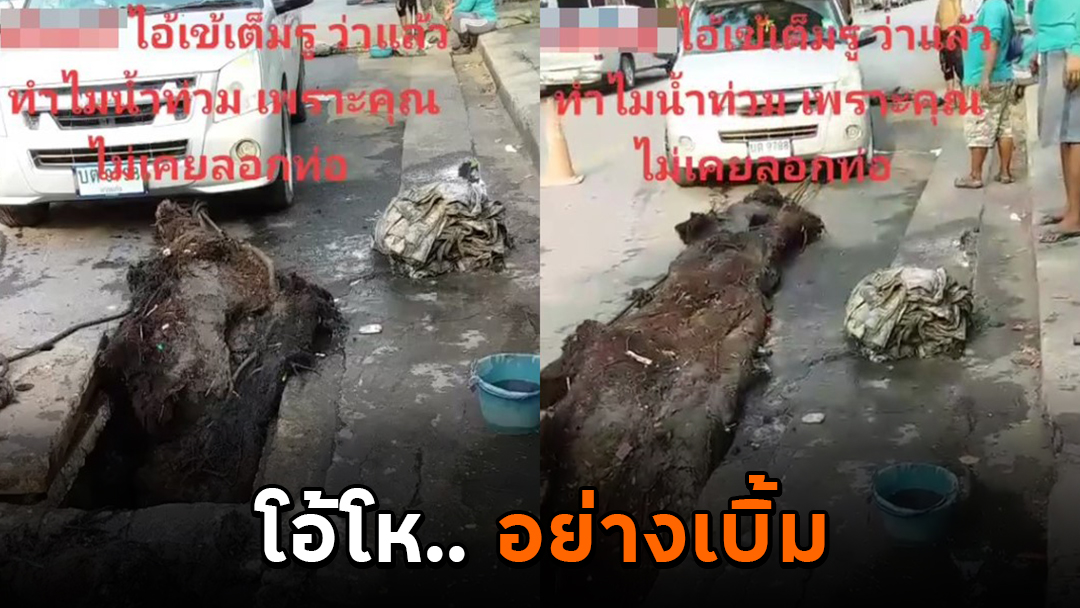 เจ้าของคลิประบุข้อความว่า "ว่าแล้วทำไมน้ำถึงท่วม เพราะคุณไม่เคยลอกท่อเลย" ซึ่งในคลิปจะเห็นว่า รถกระบะลากสิ่งปฏิกูลออกมา ซึ่งมันติดกันยาวเป็นเมตร อัดแน่นอยู่ในท่อระบายน้ำ เป็นสาเหตุหลักที่ทำให้การระบายน้ำเกิดขึ้นช้า