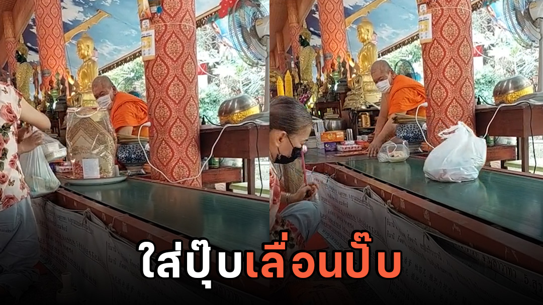 โดย TikTok ชื่อ user119655378 โพสต์คลิปการรับของทำบุญของเหล่าญาติโยม ที่เอามาเยอะแค่ไหนก็ไม่มีการวางเกะกะด้านหน้า แถมไม่ต้องให้แรงงานเด็กวัด ใช้การทำบุญแบบสายพาน วางปุ๊บเลื่อนไปเก็บปั๊บ พร้อมสวดให้พรทันที