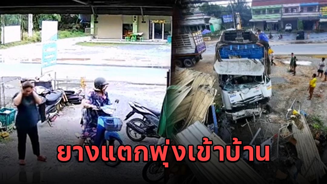 25 เม.ย. 66 ผู้ใช้ TikTok @songponart โพสต์คลิปกล้องวงจรปิด นาทีอุบัติเหตุรถบรรทุกพ่วงยางแตกพุ่งเข้าบ้าน ชนโครมสนั่นคนในบ้านหวิดไม่รอด