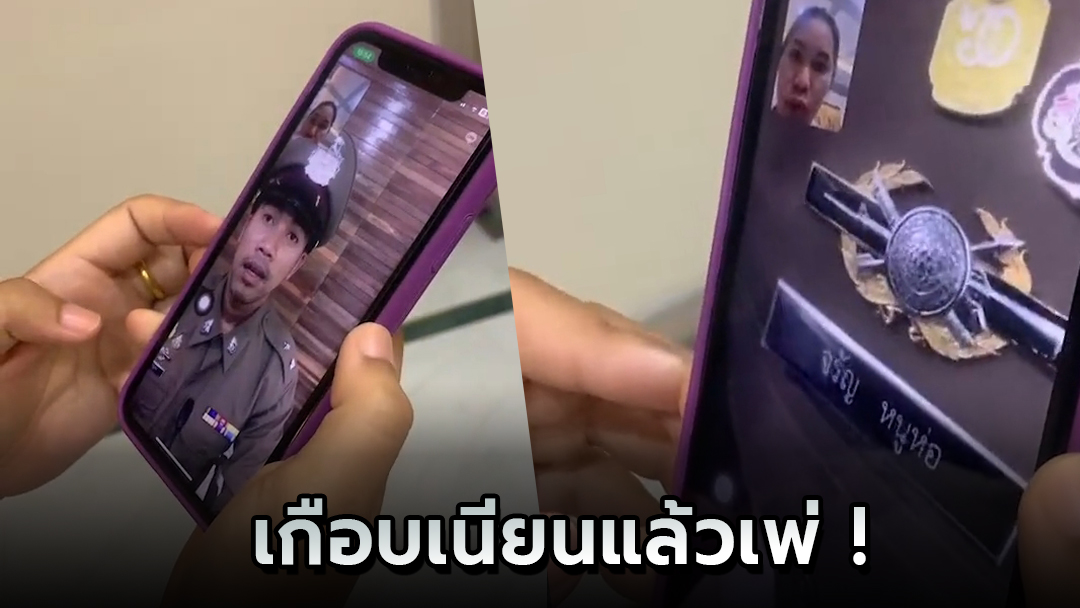 เป็นคลิปขณะกำลังวีดิโอคอลกับชายสวมเครื่องแบบตำรวจ ซึ่งเจ้าของคลิปพูดว่า พี่ชื่ออะไร ขอดูป้ายชื่อตรงหน้าอกหน่อย อีกฝ่ายก็โชว์ให้ดูชัด ๆ ว่าชื่อ จรัญ หนูห่อ และเห็นเข็มหรือยศ จากนั้นเจ้าของคลิปก็พูดอีกว่า พี่ติดเข็มผิดนะเนี่ย ทำเอาอีกฝ่ายทำหน้านิ่ง ๆ ก่อนจะรีบปิดกล้องและวางสายไป งานนี้ทำเอาชาวเน็ตคอมเมนต์สนั่น เกือบเนียนแล้วเพ่