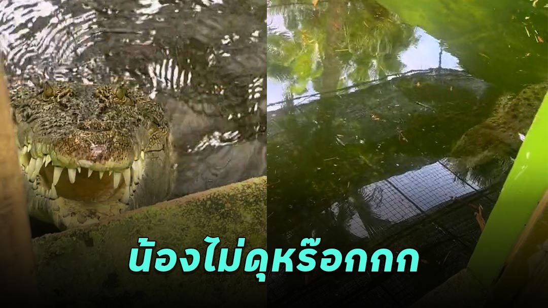 ผู้ใช้ TikTok @bangbuya_ โพสต์คลิปหวาดเสียว คนเลี้ยงจระเข้เปิดประตูบ่อเตรียมให้อาหาร ยื่นหน้าเข้าไปทักทายน้องเล่นก่อน แต่ทำเอาสะดุ้งเฮือก น้องถึงกับพุ่งงาบวินาทีนี้เกือบไปแล้ว ทำใจหายใจคว่ำหมด