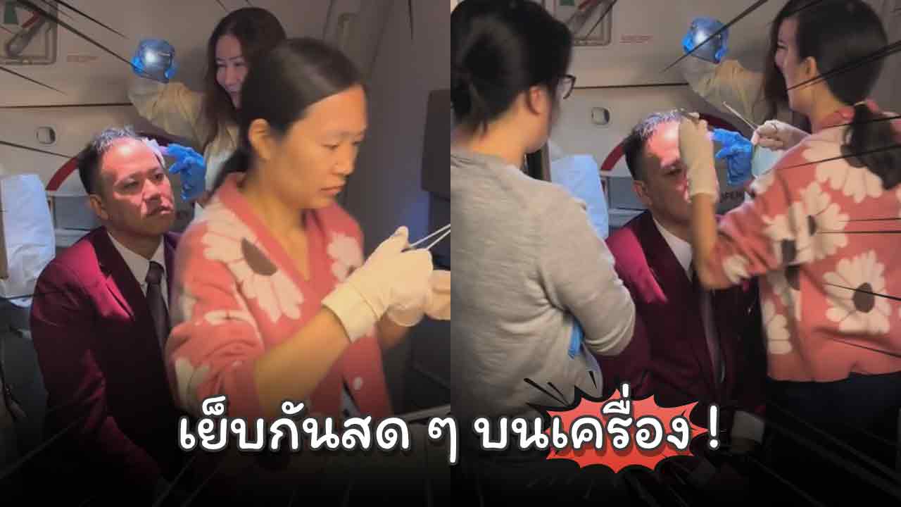 เปิดคลิปจากผู้ใช้ TikTok @mattjouney โพสต์คลิปพร้อมระบุแคปชั่นว่า “มีผู้โดยสารท่านใดเป็นแพทย์หรือพยาบาลบ้าง ขอให้ติดต่อเจ้าหน้าที่…” เสียงประกาศของกัปตันเพื่อขอความช่วยเหลือ เนื่องจากมีเหตุการณ์บางอย่างเกิดขึ้น …ก็ไม่ได้คิดอะไร จนกระทั่ง ผ่านไปสักพักเดินไปขอเติมชา… โอ้…แม่เจ้า… จาก เคบินต้องกลายเป็นห้อง ER ภาพที่เห็นคือ เลือดไหลออกจากศรีษะ และคุณหมอกำลังเย็บแผลแบบสดๆ พร้อมผู้ช่วยอีก 2 ท่าน ที่ต่างคนต่างเดินเข้ามาช่วยเหลืออย่างเต็มใจส่วนผู้ประสบเหตุคือ สจวร์ด ศีรษะกระแทกหมุดที่ล็อกที่เก็บของภาพที่เห็นตรงหน้า