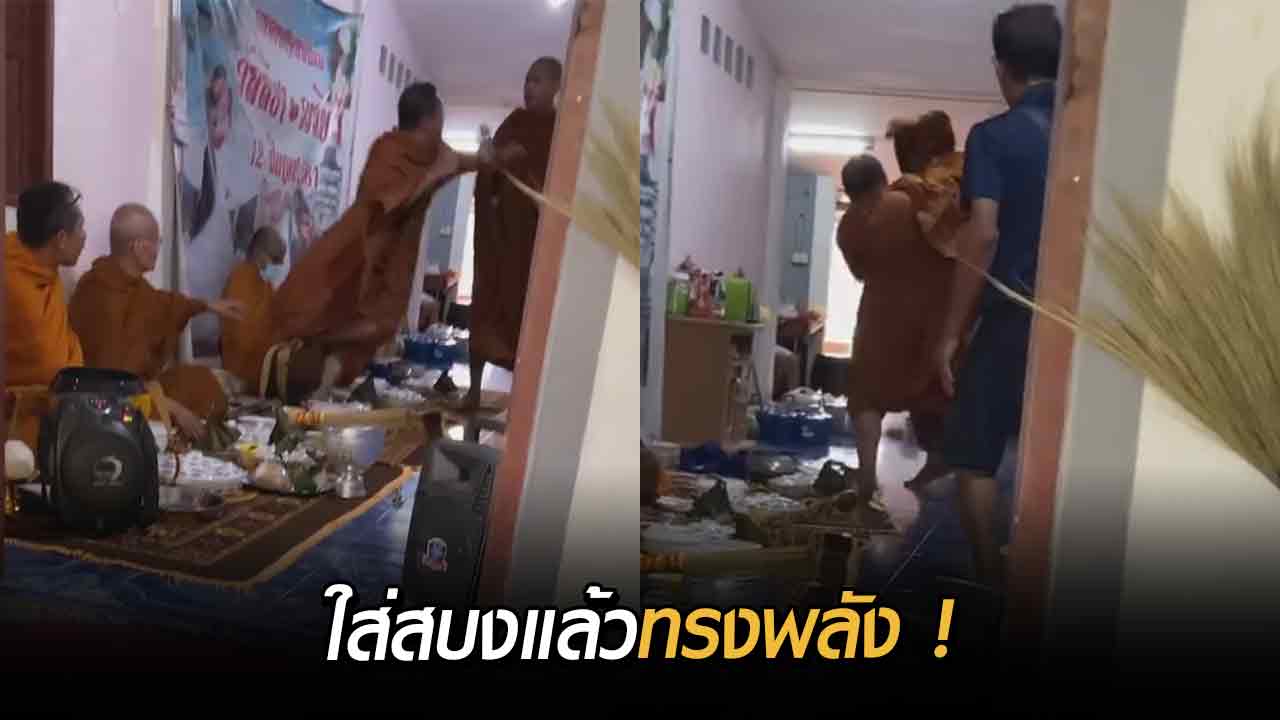 ในขณะที่ครอบครัวได้ทำพิธีและถวายเพลพระเป็นที่เรียบร้อยแล้วและพระสงฆ์กำลังนั่งฉันเพล จู่ ๆ หลวงพี่ 2 รูปได้ลุกขึ้นชกต่อยกันนัวเนีย กลางวงอาหาร
