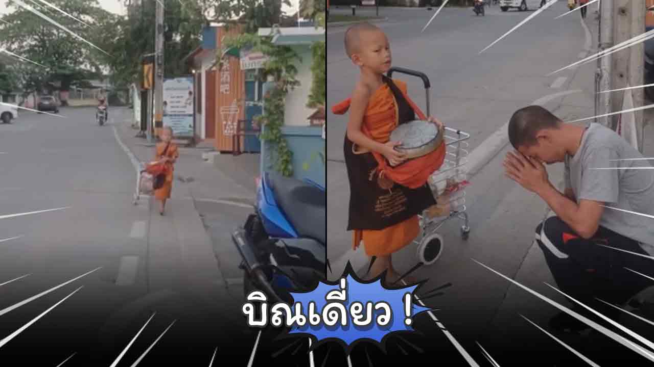 เปิดคลิปจากผู้ใช้ TikTok @hongdaengg โพสต์คลิปพร้อมระบุแคปชั่น “สามเณรบิณฑบาต บางกรวย นนทบุรี” โดยคลิปดังกล่าวเผยให้เห็นสามเณรน้อยออกบิณฑบาตยามเช้าตรู่ มาพร้อมกับรถเข็นตะกร้าใส่ของ โดยไม่มีผู้ติดตาม เมื่อมีญาติโยมมาใส่บาตรสามเณรน้อยจะสวดมนต์ให้พรญาติโยมด้วย