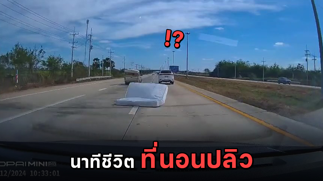 กล้องหน้ารถของผู้เสียหายบันทึกเหตุการณ์ขณะรถกระบะเสริมคอกสีขาว (ไม่ทราบทะเบียน) บรรทุกของมาเต็มคัน โดยมีที่นอนขนาดใหญ่วางอยู่ด้านบนแต่ไม่ได้มัดให้แน่นหนา ที่นอนดังกล่าวต้านแรงลมไม่ไหว ปลิวกระแทกรถเก๋งของผู้เสียหายที่ขับตามมา ส่งผลให้รถเสียหลักพุ่งลงข้างทางชนกับต้นไม้ ทำให้ด้านหน้ารถได้รับความเสียหายอย่างหนัก