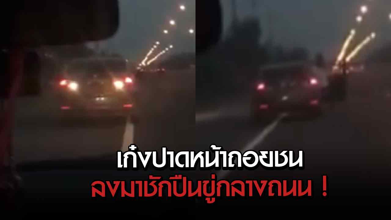 ต่อมา ขณะที่เจ้าของโพสต์ชะลอรถและพยายามเปลี่ยนเลนตามปกติ รถเก๋ง Suzuki คันดังกล่าวกลับขับแซงขึ้นมาปาดหน้า ก่อนจะถอยรถพยายามชน จนเธอต้องพยายามถอยหนี แต่คู่กรณีกลับลงจากรถพร้อมถือวัตถุลักษณะคล้ายปืน เดินมาชี้มาทางรถและชี้ขึ้นฟ้าในลักษณะคล้ายข่มขู่ ก่อนจะขึ้นรถและถอยหลังพุ่งใส่อีกครั้ง
