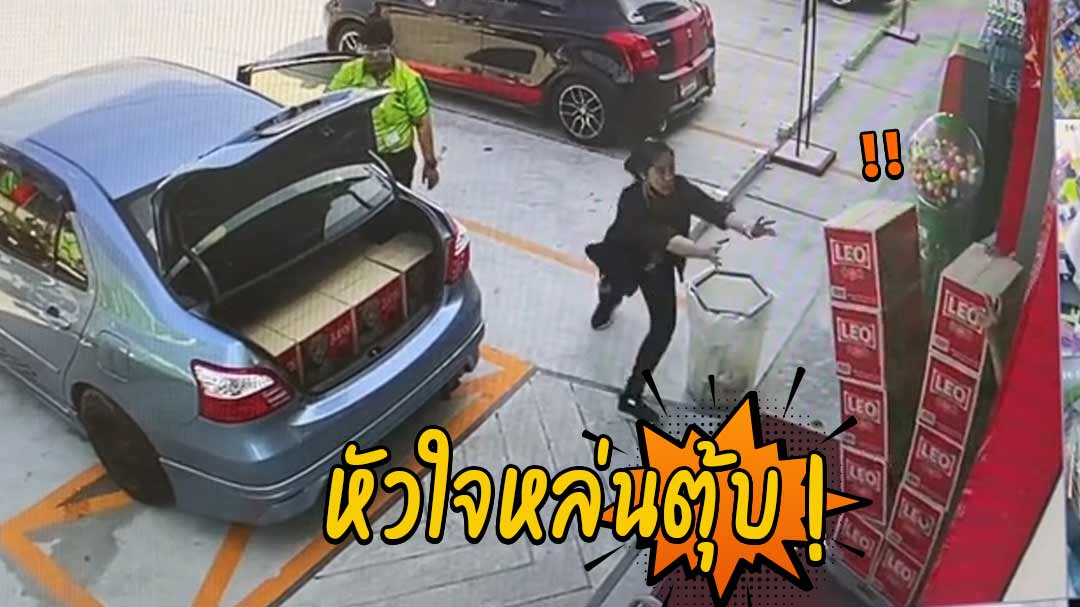 ผู้ใช้ TikTok @milddii1 โพสต์คลิปวินาทีหัวใจแทบจะลงไปที่ตาตุ่ม เมื่อน้องพนักงานขนเบียร์ออกมาแล้วเกือบหล่นแตก โชคดีที่พนักงานอีกคนยังไวช่วยได้