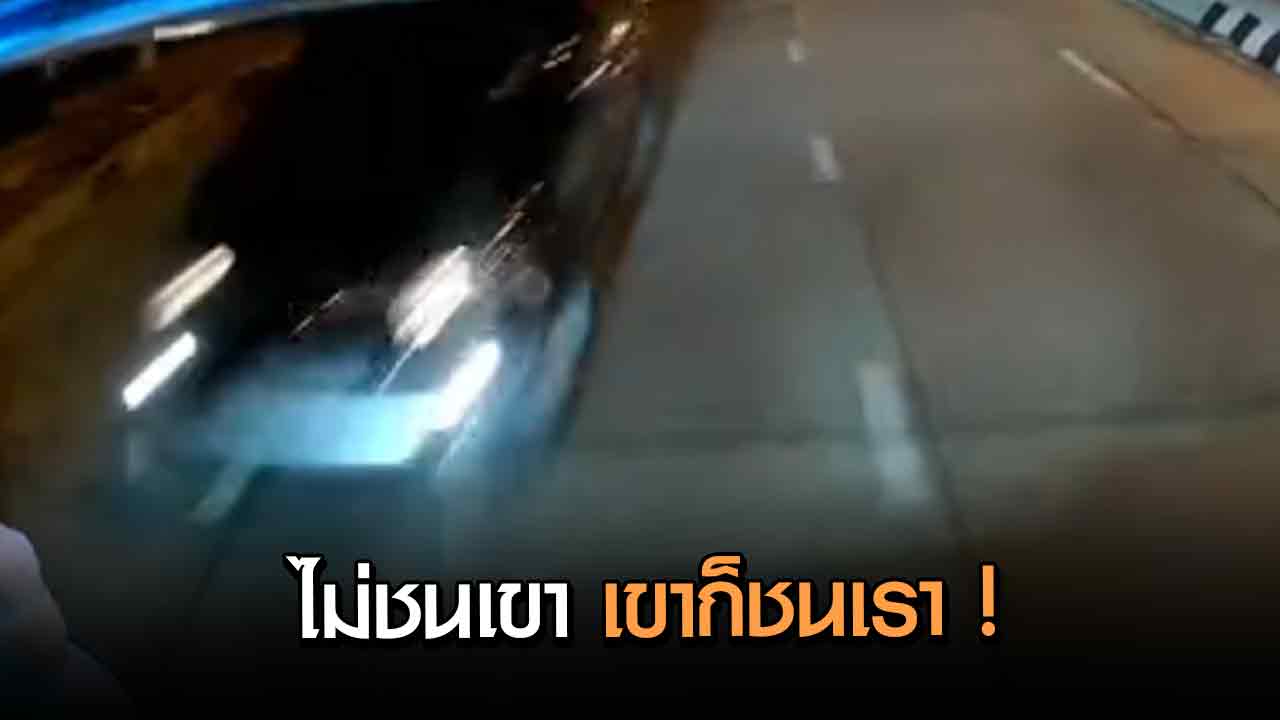 เหตุการณ์สุดระทึกถูกเผยแพร่ผ่านคลิป TikTok โดยผู้ใช้ @nattapol_wtw ขณะที่เจ้าตัวกำลังขับรถอยู่บนถนนตามปกติ แต่อยู่ ๆ กลับมีรถยนต์คันหนึ่งขับย้อนศรพุ่งตรงเข้ามา ทำให้เจ้าของคลิปต้องรีบหักหลบอย่างรวดเร็ว จนรถทั้งสองเฉี่ยวชนกันเล็กน้อย โชคดีที่ไม่มีใครได้รับบาดเจ็บหรือเสียชีวิต