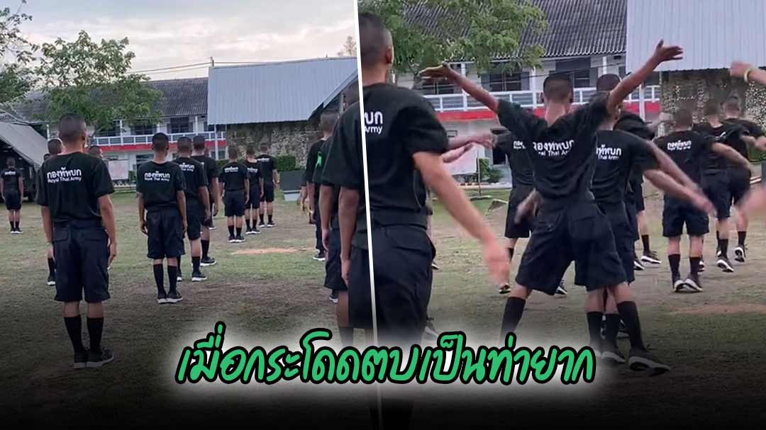 ผู้ใช้ TikTok @pranat1111 โพสต์คลิปชอตฮา ทหารใหม่ ในช่วงออกกำลังท่าพื้นฐาน “กระโดดตบ” หนึ่งในท่าพื้นฐานของการฝึกทหาร ที่ดูเหมือนง่าย…แต่ทำไมทหารใหม่บางคนถึงกลายเป็นท่ายากไปซะได้ ! 🤣