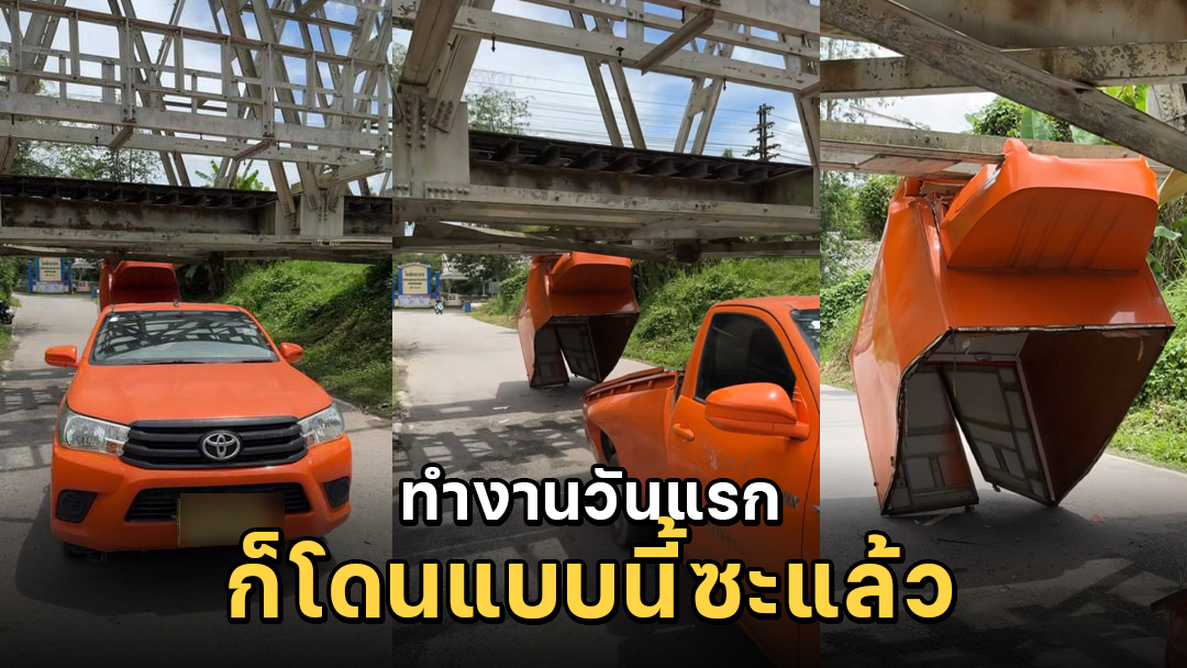 ผู้ใช้ชื่อ waradon.jay โพสต์คลิปลงแอปฯ TikTok พร้อมแคปชั่นว่า "ให้ทุกวันทำงาน เป็นวันแห่งความสุข" เมื่อพนักงานส่งของรายหนึ่งเพิ่งเริ่มงานวันแรกก็เจอเหตุการณ์สุดเซอร์ไพรส์ หลังขับรถกระบะบรรทุกของชนสะพานเหล็กเตี้ย จนหลังคาตู้หลุดกระเด็นอย่างแรง เหตุเกิดบริเวณใต้สะพานรถไฟในพื้นที่ชุมชนแห่งหนึ่ง ซึ่งสะพานมีความสูงจำกัดอย่างเห็นได้ชัด แต่เหมือนพนักงานใหม่จะไม่ทันสังเกต ทำให้ตู้บรรทุกขนาดใหญ่กระแทกเต็มแรงจนหลุดจากตัวรถ