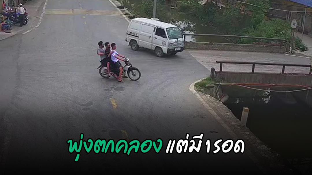 ผู้ใช้เฟซบุ๊ก Nguyên Đỗ โพสต์คลิปกล้องวงจรปิด เหตุการณ์ในเวียดนาม นาทีอุบัติเหตุบริเวณสี่แยกวัดใจ นักศึกษานั่งมอเตอร์ไซค์ซ้อน 3 หักหลบรถตู้ก่อนพุ่งตกคลองข้ามแยก มา 3 คนแต่มี 1 ที่รอดไม่เปียกน้ำ ตาไวกว่าใครเพื่อนโดดคว้าราวสะพานไว้ทันอย่างน่าทึ่ง
