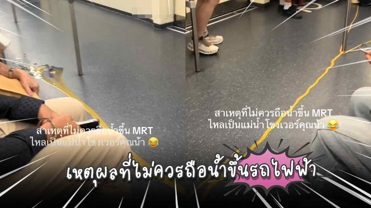 ไวรัลขำขันจาก TikTok ผู้ใช้ @bomb.19999 โพสต์คลิปเหตุการณ์บนรถไฟฟ้า MRT ที่ทำเอาหลายคนอดขำไม่ได้ เมื่อเจ้าของคลิปขึ้นรถมาแล้วพบกับแก้วน้ำหกกระจายเต็มพื้นจนกลายเป็น “สายน้ำ” ยาวเหยียดตลอดทางเดิน