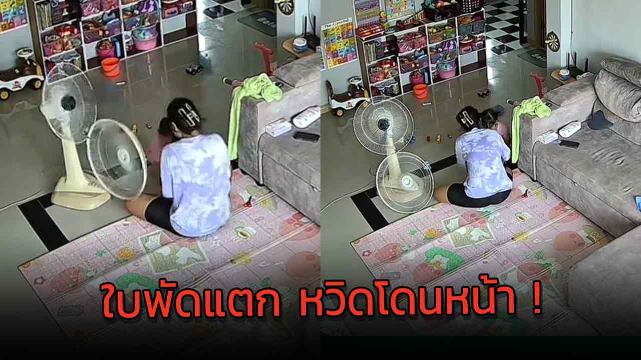 แต่เมื่อเปิดใช้งานอีกครั้งได้เพียงไม่นาน พัดลมเครื่องเดิมกลับส่งเสียงดังสนั่น ก่อนใบพัดจะหลุดกระจายทั่วห้องอย่างแรง โชคดีอย่างมากที่ใบพัดไม่โดนทั้งแม่และลูก