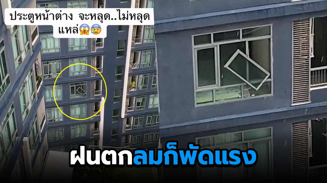 ผู้ใช้ TikTok @leeyongjay โพสต์คลิปหวาดเสียว หน้าต่างบานกระจกของห้องฝั่งตรงข้ามเหมือนจะหลุดแหล่ไม่หลุดแหล่ ฝนก็ตกลมก็พัดแรง หน้าต่างบานกระจกก็ถูกลมพัดตึง ๆ น่ากลัวมาก ถ้าร่วงไปจะเป็นยังไงเนี่ย...