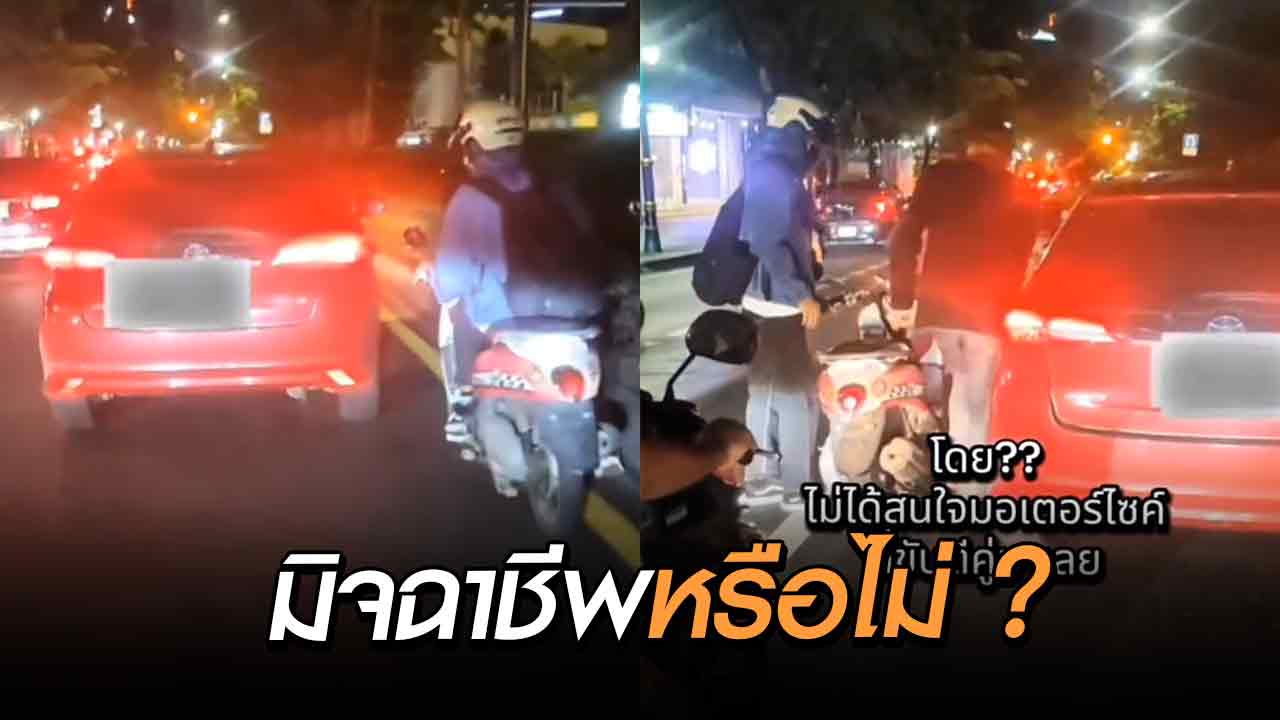 หลายคนดูแล้วอดตั้งคำถามไม่ได้ว่า “นี่คือมิจฉาชีพหรือไม่ ?” เพราะพฤติกรรมเหมือนตั้งใจให้มอเตอร์ไซค์ชนท้าย เพื่อหวังให้เกิดการเรียกค่าเสียหาย