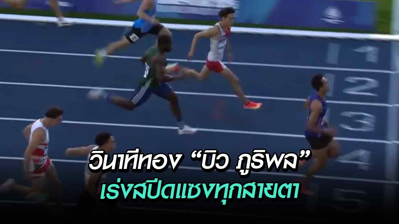 ในช่วง 30 เมตรสุดท้าย กลายเป็นไฮไลต์ชอตเทพ เมื่อเขาสับสปีดเต็มพิกัด พุ่งแซงคู่แข่งแบบไม่เห็นฝุ่น เข้าเส้นชัยเป็น อันดับ 1 ด้วยเวลา 10.24 วินาที ทะลุเข้าสู่รอบชิงเหรียญทองได้อย่างสง่างาม