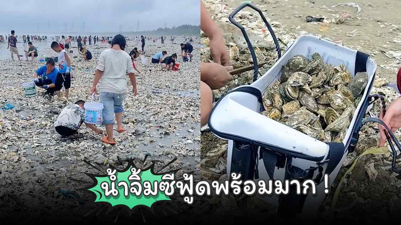 กลายเป็นศึกสุดอลหม่านที่ชายหาดเมืองเจียหยัง มณฑลกวางตุ้ง ประเทศจีน เมื่อ หอยนางรมจำนวนมหาศาลโผล่เกลื่อนหาด หลังพายุ “วิภา” พัดผ่านไม่นาน
