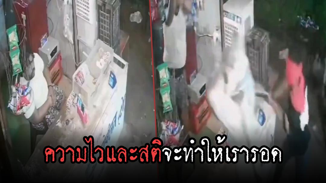 ผู้ใช้บัญชี X | @Abhimanyu1305 โพสต์คลิปกล้องวงจรปิดของร้านค้าแห่งหนึ่งในอินเดีย ที่เกิดเหตุระทึกมีโจรบุกปล้น แต่เจ้าของร้าน อาศัยไหวพริบ สติ และความไว เอาตัวรอดมาได้แบบหวุดหวิด จังหวะนี้บอกเลยว่า “เสี้ยววินาทีเปลี่ยนชีวิต”