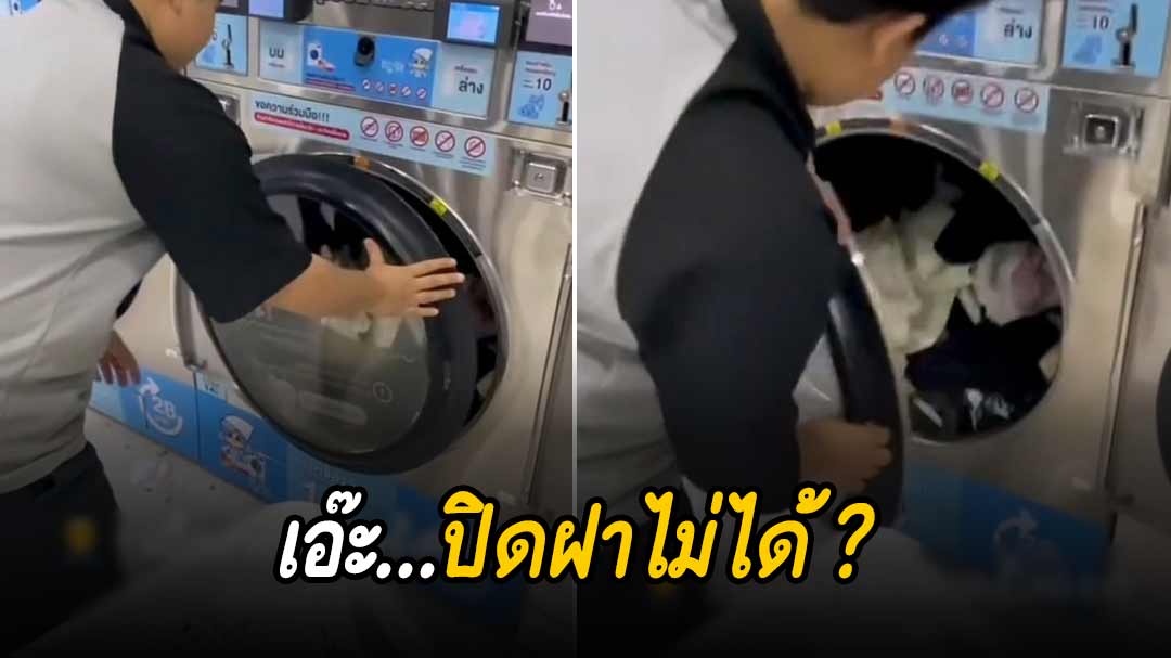 ผู้ใช้ TikTok @aom.aom11041 โพสต์คลิปชอตฮา พร้อมแคปชั่น "เมื่อมาซักผ้าครั้งแรก กะว่าจะเป็นพ่อบ้านสักหน่อย" เอาผ้ามาซักที่ร้านซักผ้าหยอดเหรียญ พอถึงตอนจะปิดฝาเครื่องซักผ้าดันปิดไม่ได้ เอ๊..ทำไมกันนะ ? ก่อนอีกคนจะทักบอก ถึงกับมีเขินเลย ซักผ้าเครื่องนี้แต่ดันเอาฝาเครื่องข้าง ๆ มาปิด
