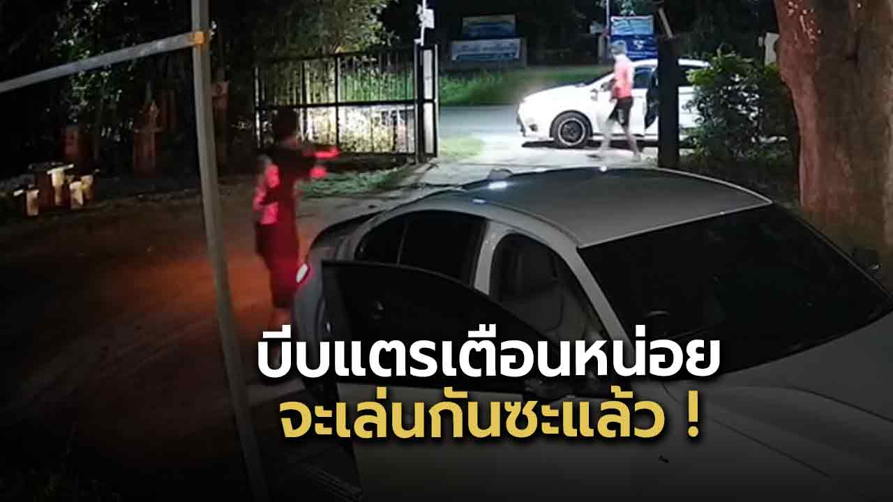 เมื่อขับเข้ามาจอดในสนาม รถคันดังกล่าวกลับขับตามมาพร้อมลงจากรถเหมือนจะเอาเรื่อง แต่เจ้าของคลิปไม่รอให้เหตุการณ์บานปลาย รีบเปิดรถหยิบปืนลูกซองยาวออกมาเดินโชว์ ทำเอาอีกฝ่ายถึงกับรีบถอยขึ้นรถกลับอย่างไว พร้อมทิ้งแคปชั่นสุดแซวว่า “แหม๋ บีบแตรเตือนหน่อย กะจะเล่นกันเลยนะ พ่อหนุ่ม”