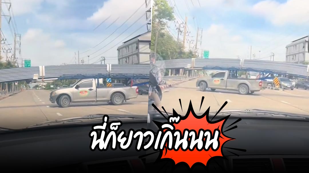 เพจเฟซบุ๊ก Social Hunter 2024 แชร์คลิปรถกระบะบรรทุกเหล็กยาวเกินตัวรถ ทั้งด้านหน้า ด้านหลัง เหล็กยาวหลายเมตร แค่เห็นก็หวาดเสียว ด้านชาวเน็ตคอมเมนต์วิจารณ์กันสนั่น ขนเหล็กยาวขนาดนี้ ตำรวจไม่เห็นไม่จับเหรอ รอดมาได้ยังไง ?