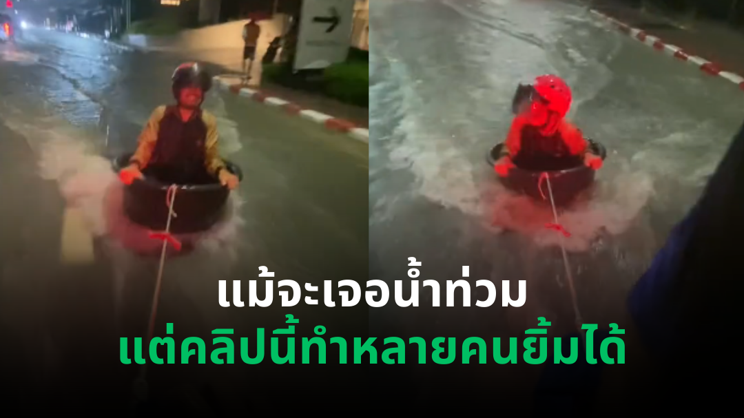 ผู้ใช้ TikTok @wiphawannilto โพสต์คลิปชวนอมยิ้ม ฝนตกหนักทำน้ำท่วมขังถนน แต่พ่อหนุ่มคนนี้เขาไม่มีเครียด หยิบกะละมังมาทำเป็นเรือลากเล่น แถมไม่ลืมสวมหมวกกันน็อกเพื่อความปลอดภัยด้วย นี่แหละคนไทยที่แปลว่าอิสระ !