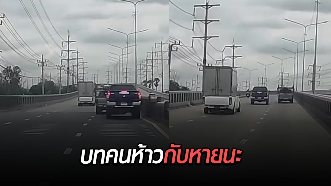 เพจเฟซบุ๊ก ควายหลุดถนน V1 โพสต์คลิปกล้องหน้ารถนาทีอุบัติเหตุ บนถนนฉลองกรุง เมื่อวันที่ 26 ก.ย. 2568 จังหวะรถกระบะ 2 คันจะเข้าเลนขวา กระบะสีดำโดนปาดหน้าก็เกิดหัวร้อนจะเอาคืน พอปาดกลับก็กลายเป็นหายนะ