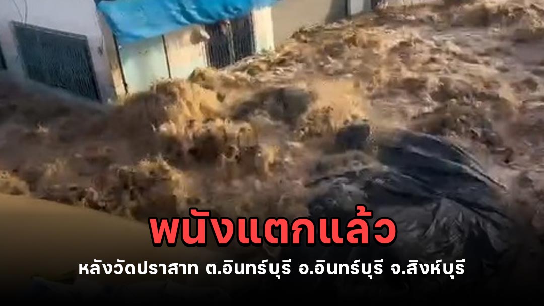 วันที่ 12 พฤศจิกายน 2568 ผู้ใช้เฟซบุ๊ก ชาคริสต์ คงสมบุญ อัปเดตสถานการณ์น้ำท่วม เมื่อเวลาประมาณ 16.40 น. พนังกั้นน้ำหลังวัดปราสาท พื้นที่ ต.อินทร์บุรี อ.อินทร์บุรี จ.สิงห์บุรี ต้านแรงดันน้ำไม่ไหวพังทลายแล้ว มวลน้ำทะลักท่วมหมู่ 3,5,5 อย่างรวดเร็ว แจ้งเตือนพี่น้องประชาชนในพื้นที่น้ำท่วม เร่งเก็บของขึ้นที่สูง