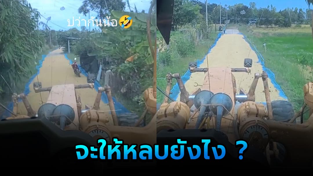 ผู้ใช้ TikTok @he.des7 ขับรถเกรดดินผ่านหมู่บ้านแห่งหนึ่ง จ.บุรีรัมย์ เจอชาวบ้านตากข้าวบนถนน เห็นแล้วก็เกรงใจแต่ตากข้าวเต็มถนนแบบนี้ จะให้หลบยังไง ? เมื่อหลบไม่ได้ก็ต้องขับฝ่าไป..อย่าว่ากันนะ