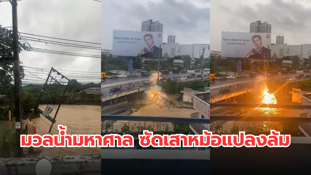 ผู้ใช้ TikTok @thanapornmik และ @riesmemojellypepo โพสต์คลิปน้ำท่วมหาดใหญ่ วินาทีมวลน้ำมหาศาล ซัดเสาหม้อแปลงล้มก่อนเกิดระเบิด ที่สะพานข้ามทางรถไฟข้างเซ็นทรัล หาดใหญ่ เมื่อวันที่ 22 พ.ย. 2568 น่ากลัวมาก