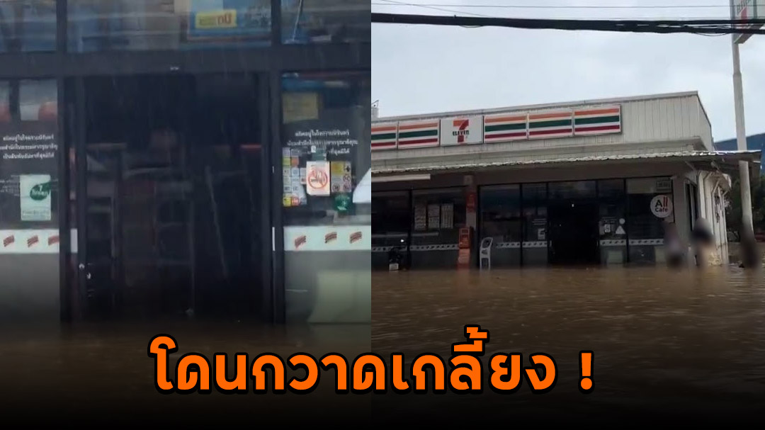 บัญชี X @Mr_Whathapened โพสต์คลิปสภาพร้าน เซเว่น อีเลฟเว่น ที่ถูกน้ำท่วมให้หาดใหญ่ พร้อมข้อความระบุว่า "เห็นพนักงานเซเว่น หาดใหญ่ โพสต์ว่าหลังจากที่น้ำมาแล้วไฟดับ คนที่อยู่ในระแวกใกล้เคียงและคนในเซเว่นกวาดของกันฉ่ำ ต้นทางบอกเจ้าสัวรัวแล้วก็ถือว่าช่วยชาวบ้าน🤔 #น้ำท่วมหาดใหญ่"