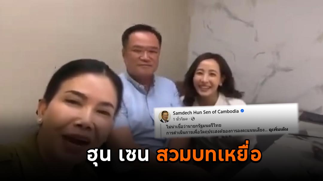 ฮุน เซน สวมบทเหยื่อ ปล่อยคลิป นายอนุทิน ชาญวีรกูล นายกรัฐมนตรีไทย พร้อมภริยา ถ่ายรูปและคลิปร่วมกับ นางบาน สเรยมัม ผู้ว่าราชการจังหวัดไพลิน ของกัมพูชา ขณะร่วมโต๊ะอาหารกันในบรรยากาศชื่นมื่น สนิทสนม พร้อมแคปชั่น