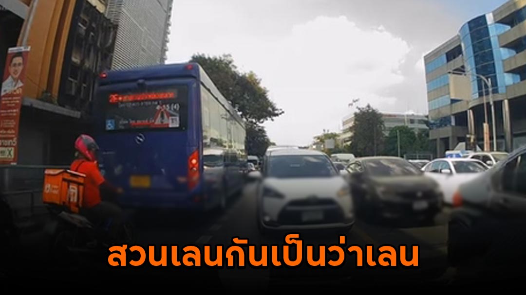 คลิปกล้องหน้ารถจากผู้ใช้ TikTok @tumtoday ฝั่งเลนสวนรถติดยาวทำให้หลายคนรอไม่ไหว พากันขับรถสวนเลนแบบไม่สนกฎจราจร ที่นี่ถนนเพชรบุรี เลนสวนคือเลนเลี้ยวขวาเข้าถนนบรรทัดทอง