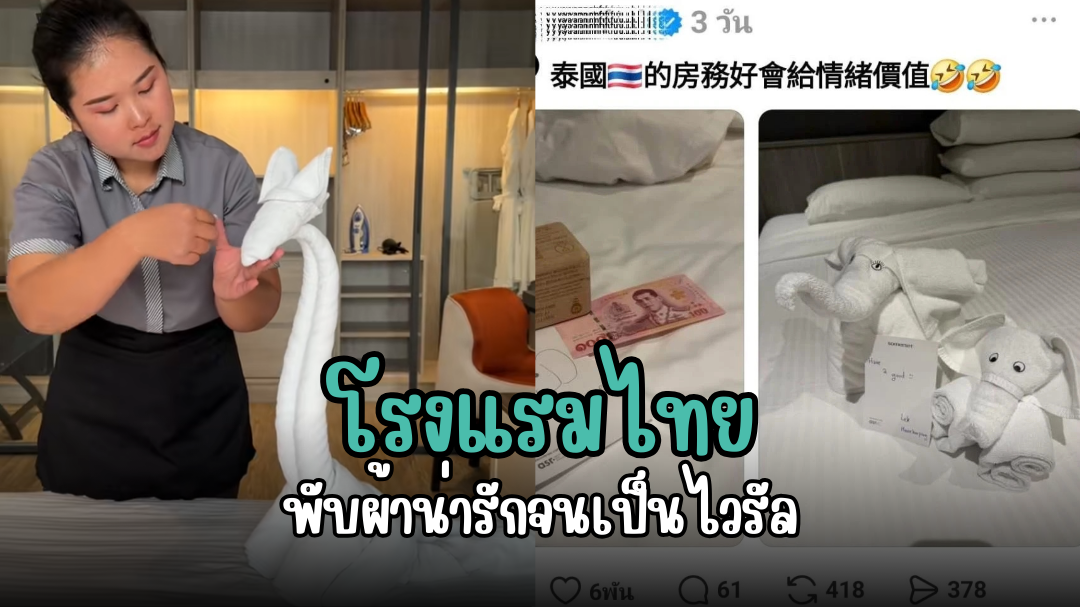 โรงแรมไทยไม่ทำให้ผิดหวังจริง ๆ ไวรัลน่ารัก เมื่อนักท่องเที่ยวไต้หวัน วางโน้ตพร้อมทิปขอให้พับเป็นสัตว์ตัวอื่น หลังไปพักที่โรงแรม แล้วเจอผ้าพับเป็นสัตว์สุดน่ารักวางไว้บนเตียง ล่าสุด โรงแรม Somerset Rama 9 Bangkok โพสต์คลิปพร้อมภาพ (12 ม.ค. 2569) โชว์ชัด ๆ พนักงานทำจริงไม่ใช่ AI