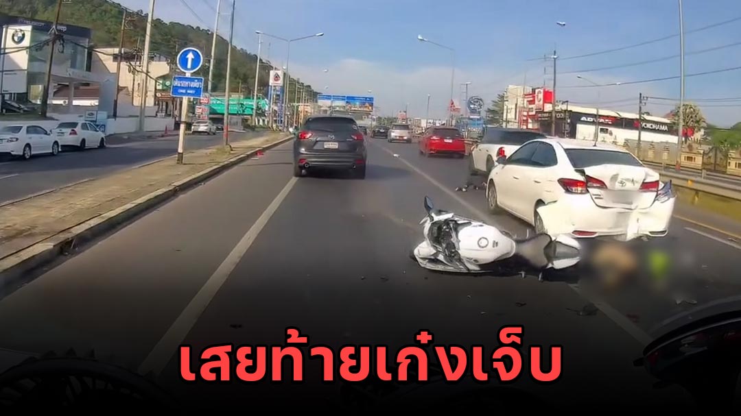 เพจเฟซบุ๊ก เหยี่ยวข่าว ภูเก็ต Newshawk Phuket โพสต์คลิปอุบัติเหตุบนถนนบายพาสภูเก็ต (ขาออก) ต. รัษฎา อ.เมือง จ.ภูเก็ต รถมอเตอร์ไซค์บิ๊กไบค์ ขี่มาเร็วเจอรถยนต์เปลี่ยนเลนหักหลบก่อนพุ่งชนท้ายรถเก๋ง 2 คัน ทั้งคนขี่และคนซ้อนบาดเจ็บสาหัส อุบัติเหตุวันที่ 19 ม.ค. 2569