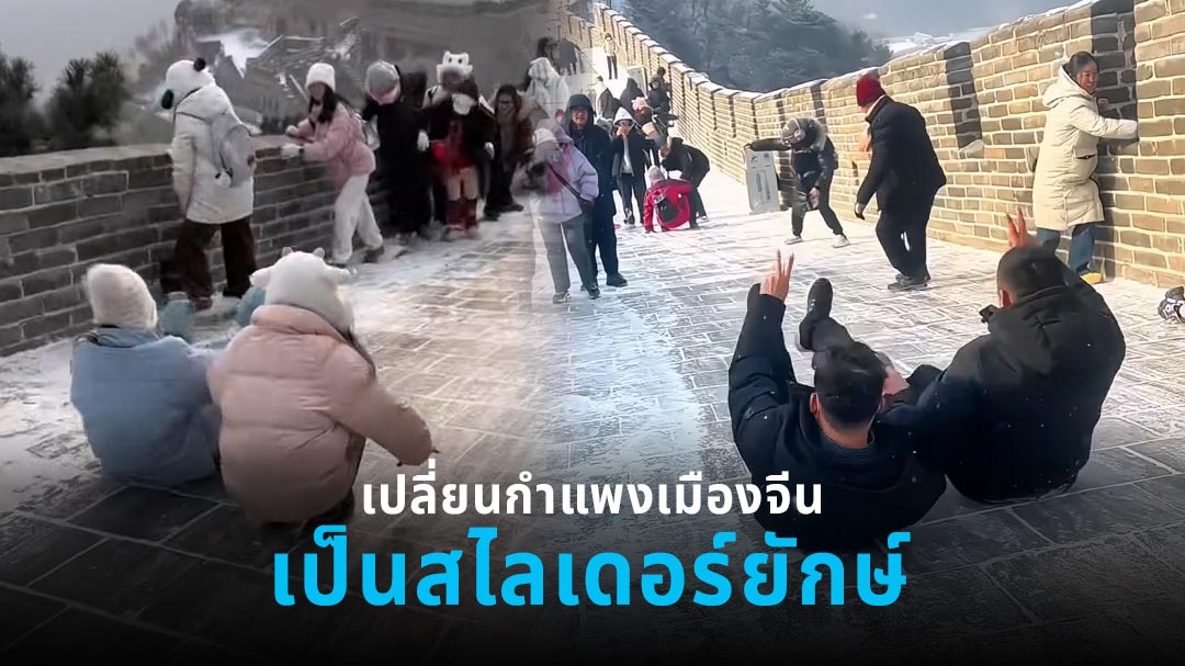 กลายเป็นไวรัลฮิตในจีน หลังจากหิมะแรกของปี 2569 ตกหนักในกรุงปักกิ่ง ทำให้สถานที่ท่องเที่ยวดังอย่างกำแพงเมืองจีนเปลี่ยนสภาพกลายเป็นเหมือนสไลเดอร์ยักษ์ ทางลาดถูกปกคลุมด้วยน้ำแข็ง นักท่องเที่ยวจำเป็นต้องใช้ทั้งมือและเท้าในการก้าวเดินอย่างระมัดระวัง แต่นักท่องเที่ยวหลายคนที่ชอบความตื่นเต้นถึงกับอดใจไม่ไหว พากันไปลื่นสไลด์เล่นกันอย่างสนุกสนาน