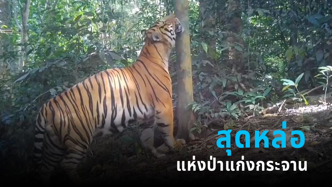 กรมอุทยานแห่งชาติ สัตว์ป่า และพันธุ์พืช เผยคลิปกล้องดักถ่ายจับภาพ ณเดช (KKT02M) เสือโคร่งเจ้าถิ่นตัวตึงแห่งอุทยานแห่งชาติแก่งกระจาน ได้แบบใกล้ ๆ แบบจัดเต็ม โดยเสือโคร่ง ณเดช เดินมาถูกับต้นไม้อย่างสบายอารมณ์ ก่อนมาทักทายกล้องด้วยการหาวโชว์เขี้ยวให้เห็น นี่สะท้อนให้เห็นถึงความอุดมสมบูรณ์ของผืนป่าได้เป็นอย่างดี