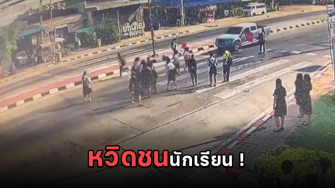 ระทึก ! กระบะหวิดชน นักเรียนข้ามทางม้าลาย