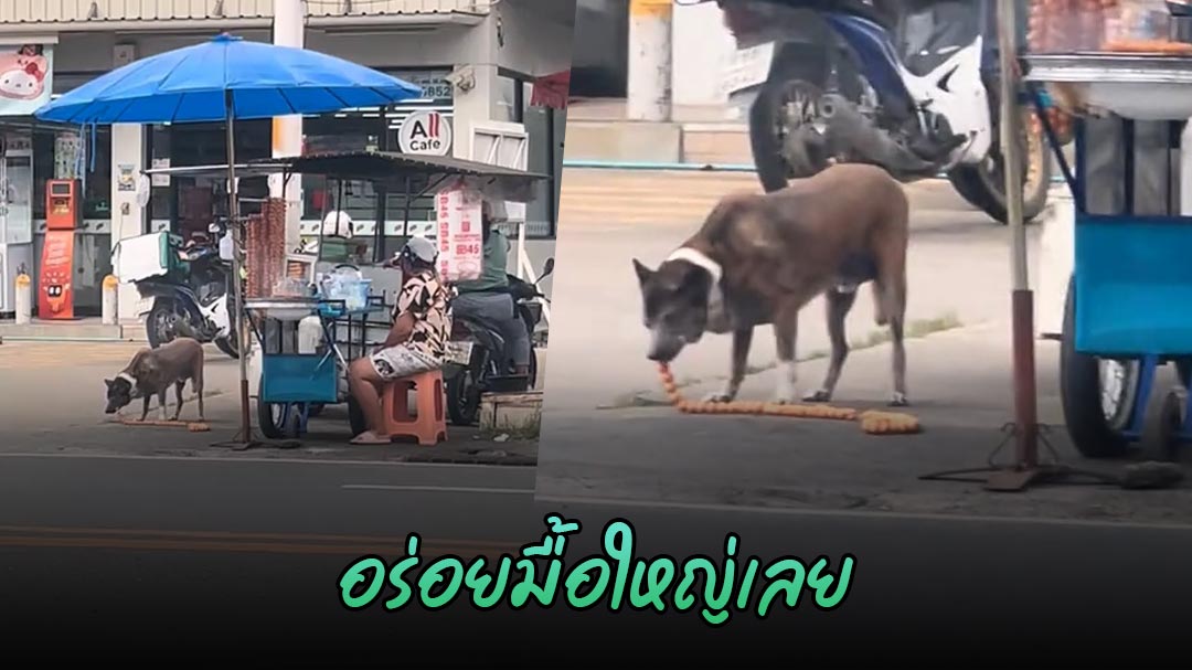 ที่ร้านไส้กรอกหน้าเซเว่นฯ แห่งหนึ่ง แม่ค้าทำไส้กรอกร่วงตกพื้นไป 1 พวงใหญ่ ทำเจ้าตูบได้ลาภปากอิ่มแปร้ไปมื้อใหญ่