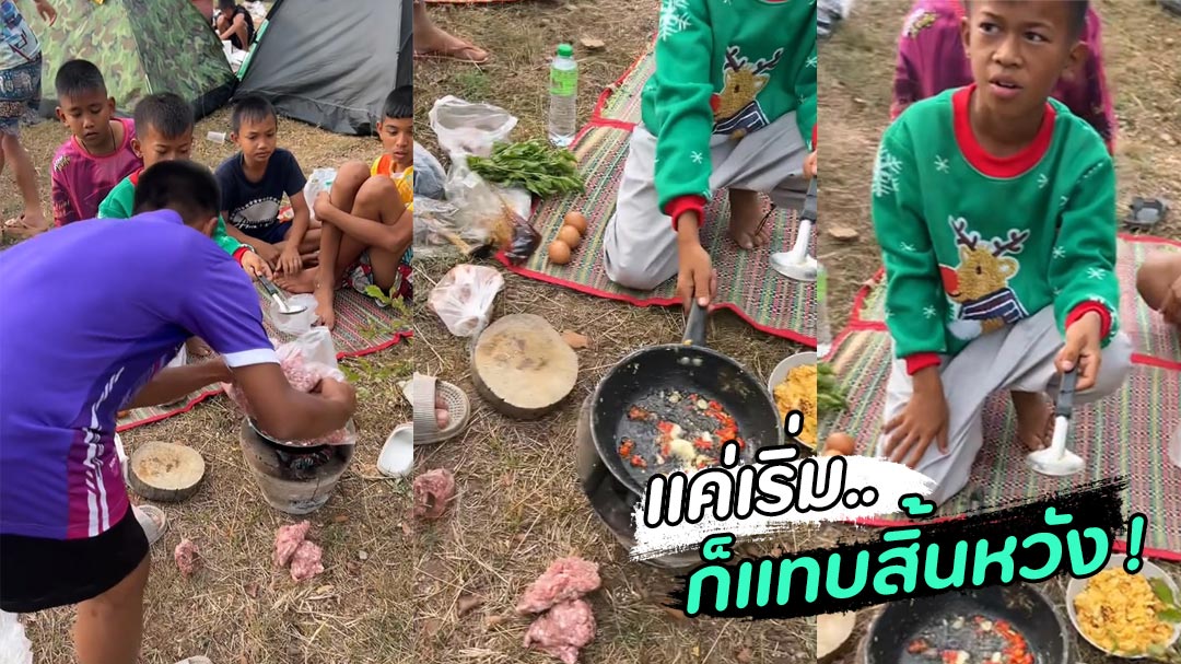 ผู้ใช้ TikTok @popaparichat โพสต์คลิปเมื่อเด็กนักเรียนต้องไปเข้าค่ายลูกเสือ พอถึงเวลาทำอาหารแต่ละกลุ่มจะทำเมนูอะไรกัน โดยเฉพาะลูกเสือกลุ่มนี้ แค่เริ่มตั้งกระทะก็แทบสิ้นหวังแล้ว มื้อนี้จะได้กินไหมเนีย ?